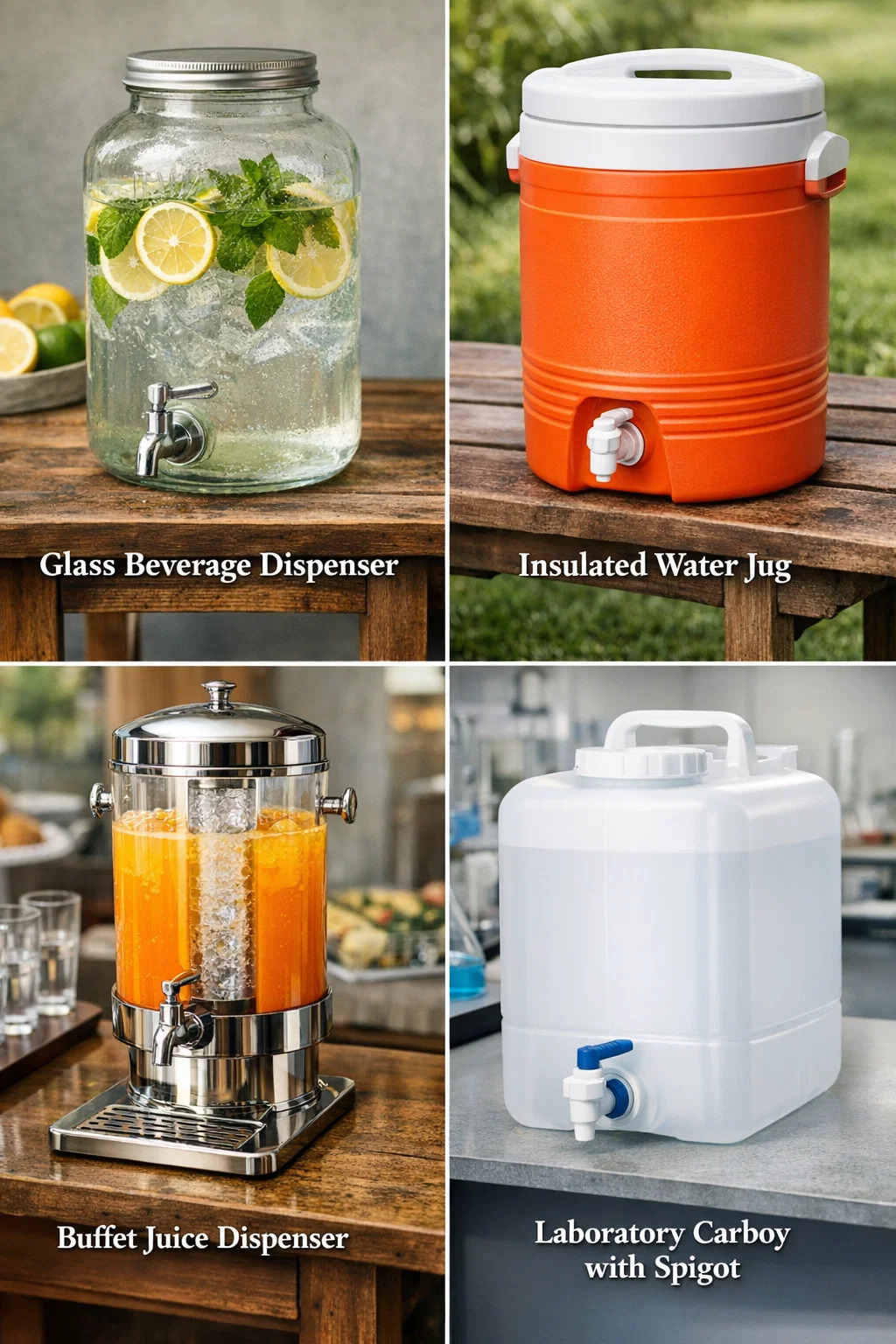 Usage courant : les gens l'appellent généralement « distributeur de boissons en verre » ou « distributeur d'eau avec robinet ». Parce qu'il est transparent, il est très joli avec des glaçons, des tranches de citron ou des feuilles de menthe à l'intérieur.